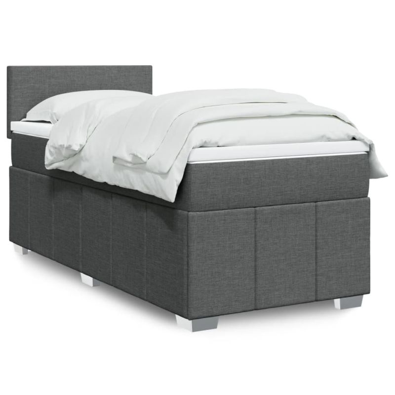 Боксспринг легло с матрак, тъмносиво, 90x200 см, плат