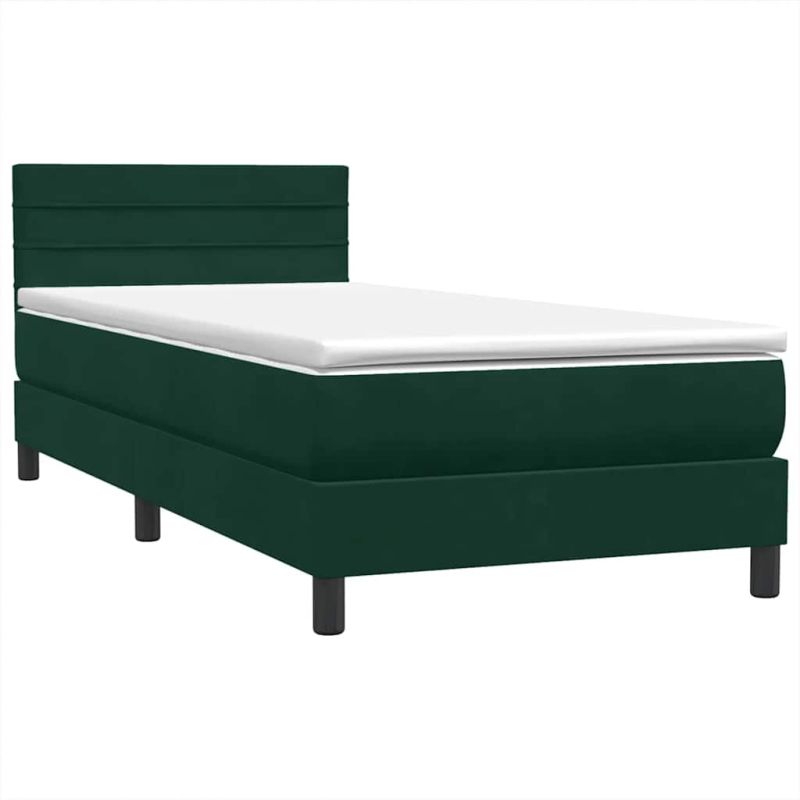 Боксспринг легло с матрак и LED, тъмнозелено, 80x220 см, кадифе