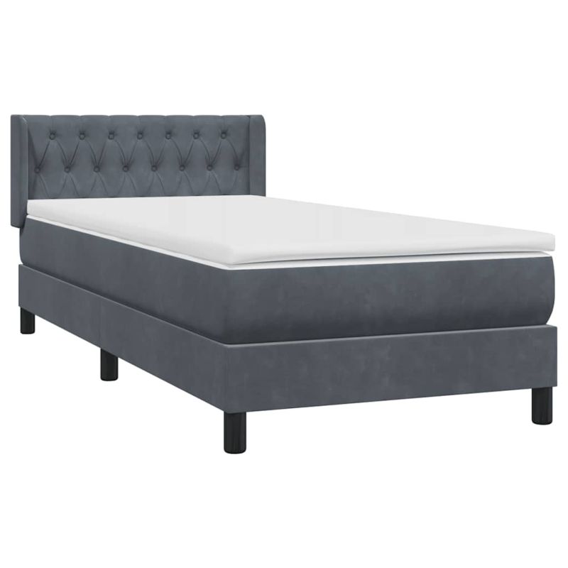 Боксспринг легло с матрак, тъмносиво, 90x220 см, кадифе