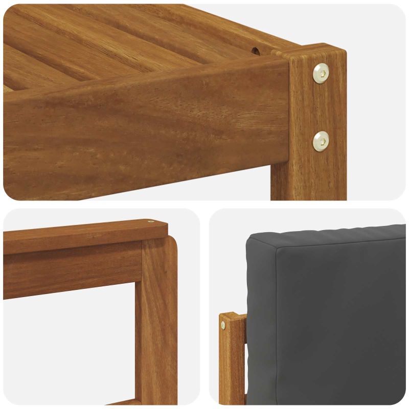 Този комплект мебели за градината е съвременно решение за нуждите ти на открито. Комбинира стил и функционалност, подходящи за градина, патия, задни дворове или около басейна. Изработен от здрава акациева дървесина и с модерен ламелен дизайн, той предлага изчистена и деликатна естетика. Кафявият цвят пасва на различни открити декори, а модулната структура позволява лесно да персонализираш местата според повода. Материали: Изработен от масивна акациева дървесина, този комплект акцентира на здравина и естествена красота. Акациевата дървесина е супер устойчивa на елементи, което я прави идеална за градински мебели. Осигурява дълготрайна употреба без много грижи, запазвайки формата си с времето. Включени компоненти: Комплектът включва ламелна облегалка и фиксирана рамка в стилен дизайн. Всички елементи, включително гърба и подлакътниците, са изработени от същата акациева дървесина, което придава последователност на дизайна. Тези детайли осигуряват персонализирано изживяване на открито, съчетавайки визия с функционалност. Функции / Дизайн: Комплектът е проектиран да устоява на всякакви метеорологични условия - дъжд, UV лъчи и температурни колебания. Модулният дизайн позволява пренареждане, което ти дава гъвкавост и разнообразие в създаването на уютно пространство, с стил и практичност. Препоръчителни употреби: Идеален за градини, патии, задни дворове или около басейна, комплектът е прекрасно място за релакс, гостоприемство или вечерни разговори на открито. Той е адаптивен и създава приятно пространство, което да допълва различни стилове. Поддръжка: За да изкараш по-дълго от комплекта, използвай покривало за мебели, когато не е в употреба и не го оставяй дълго на пряка слънчева светлина. Често го чисти с влажна кърпа, за да изглежда свеж и привлекателен. Тези лесни стъпки осигуряват дълготрайността и комфорта на мебелите.