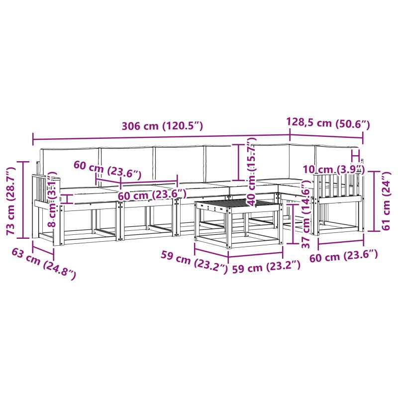 • 6 x Възглавница за сядане: 60 x 60 x 8 см (Д x Ш x В)