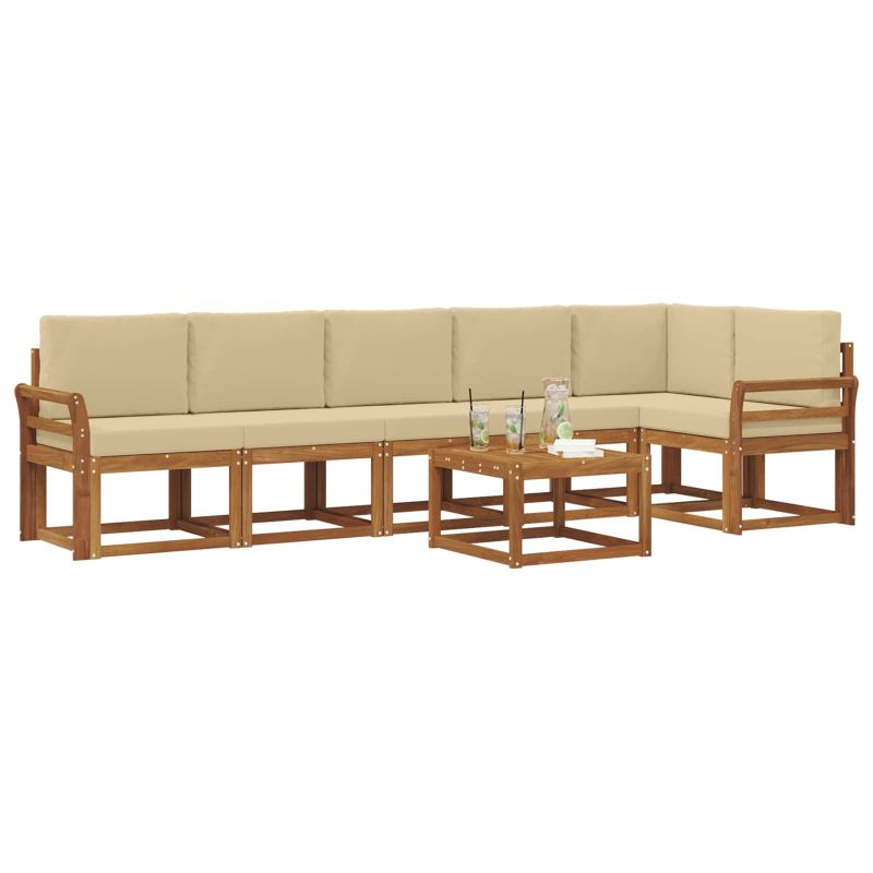 Комплект дивани за открито 7 pcs Натурален и Бежов