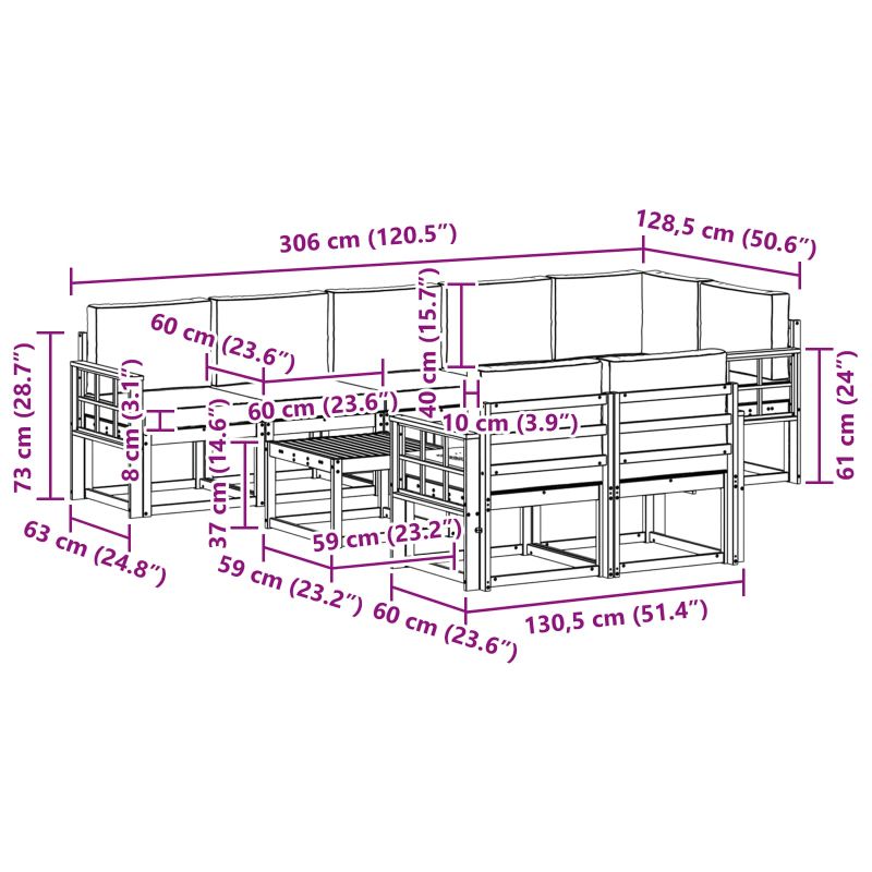 • 8 х възглавница за сядане: 60 х 60 х 8 см