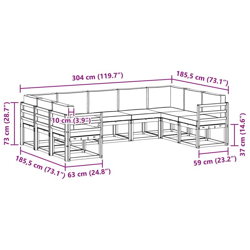 • 9 x възглавница за сядане: 60 x 60 x 8 см (Д x Ш x В)