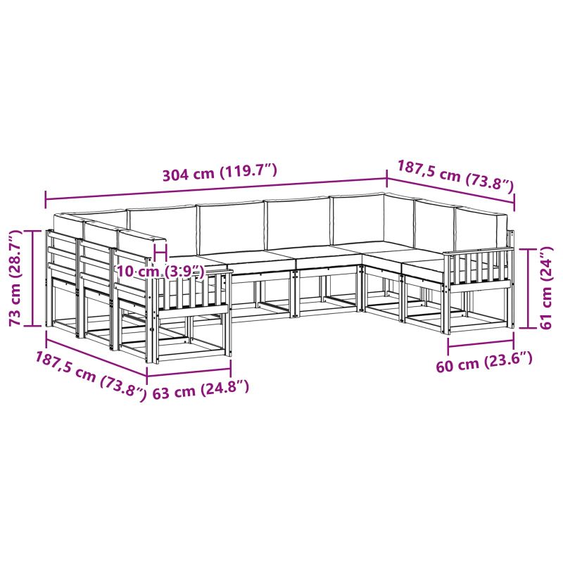 • 9 x възглавница за сядане: 60 x 60 x 8 см (Д x Ш x В)