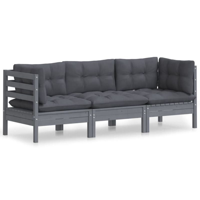 Начало Дом и градина Мебели Външни мебели Външно обзавеждане Градински дивани 3-местен градински диван с възглавници антрацит, бор масив