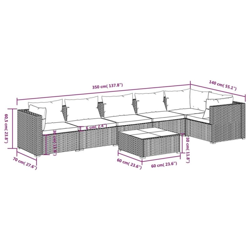 Градински лаундж комплект с възглавници 7 части черен полиратан