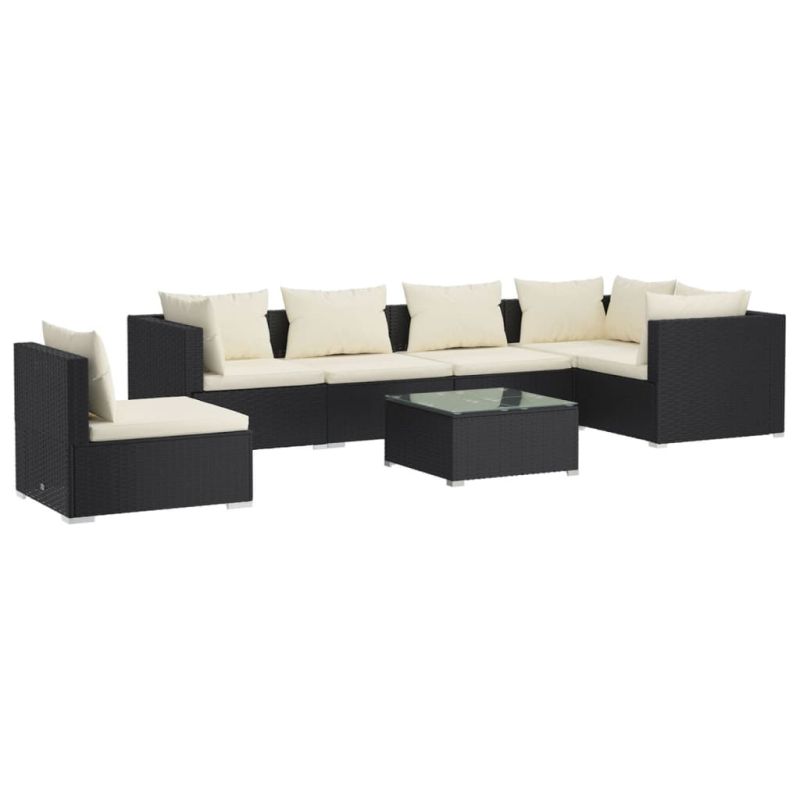 Градински лаундж комплект с възглавници 7 части полиратан черен