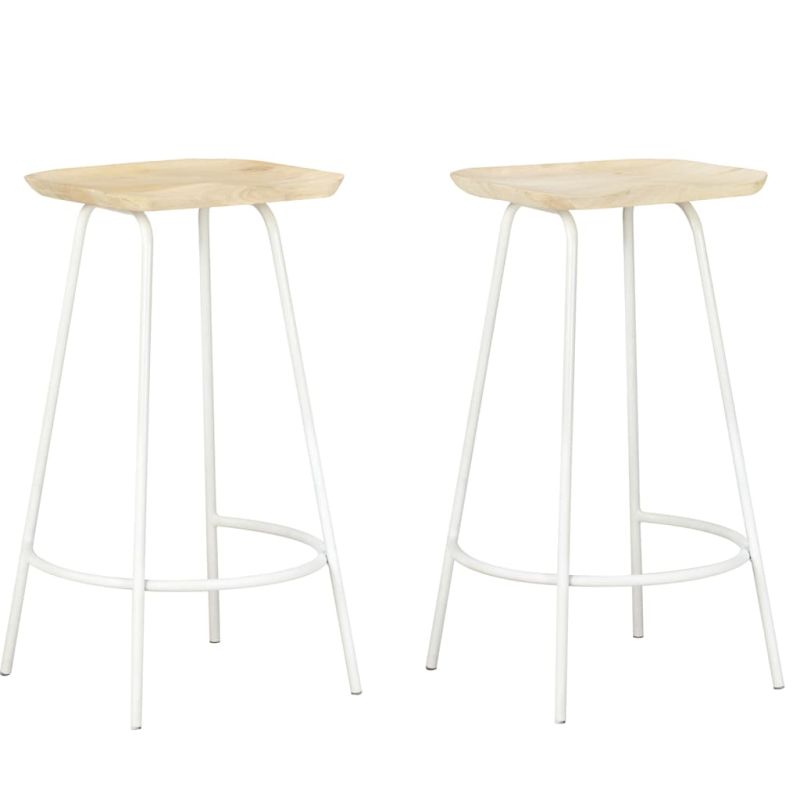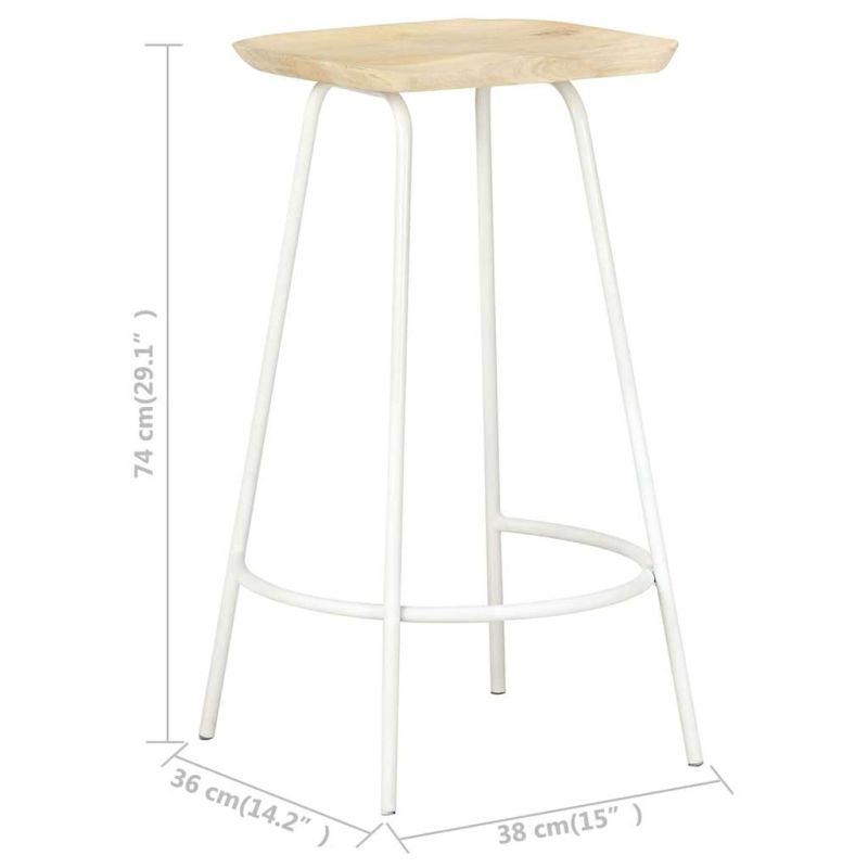 Насладете се на чаша вино, хапнете или просто се отпуснете на тези дървени бар табуретки с приятелите и семейството си! Тези бар столове са изработени от мангова дървесина масив, която представлява тропическа твърда дървесина. Тя има силата да понесе тежестта, а също така издържа на износване във времето. Изящното майсторство и красивите дървесни шарки правят всеки комплект бар табуретки малко по-различен от следващия. Табуретките са с избелен финиш, което ги прави чудесно допълнение към декора на дома ви. Тези табуретки за пъб разполагат и с вградени подложки за крака за допълнителен комфорт при седене. Важна забележка: Цветовете и шарките могат да варират, което прави всяка мебел уникална и малко по-различна от останалите. Доставката е на случаен принцип. Максимално 110 кг на седалка.