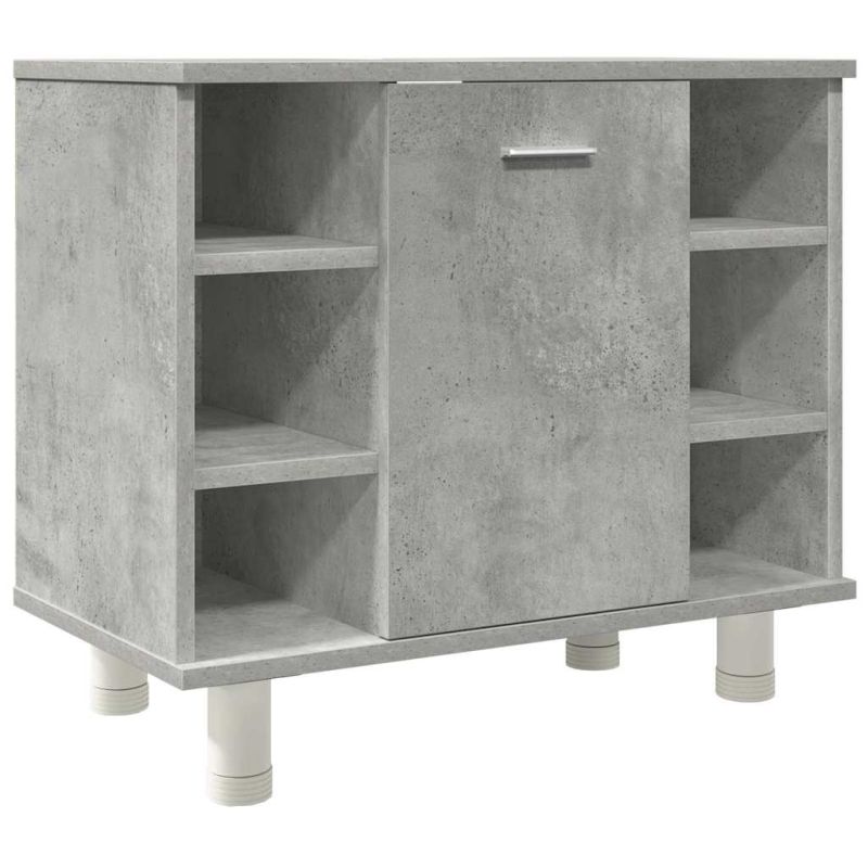 Комплект мебели за баня от 3 части бетонно сив инженерно дърво