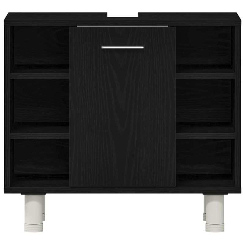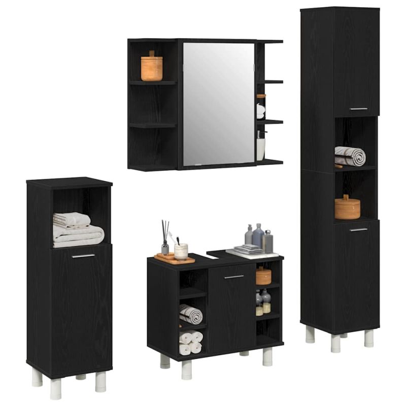 Комплект мебели за баня с рафт 4 pcs Черно 30 x 30 x 179,5 см