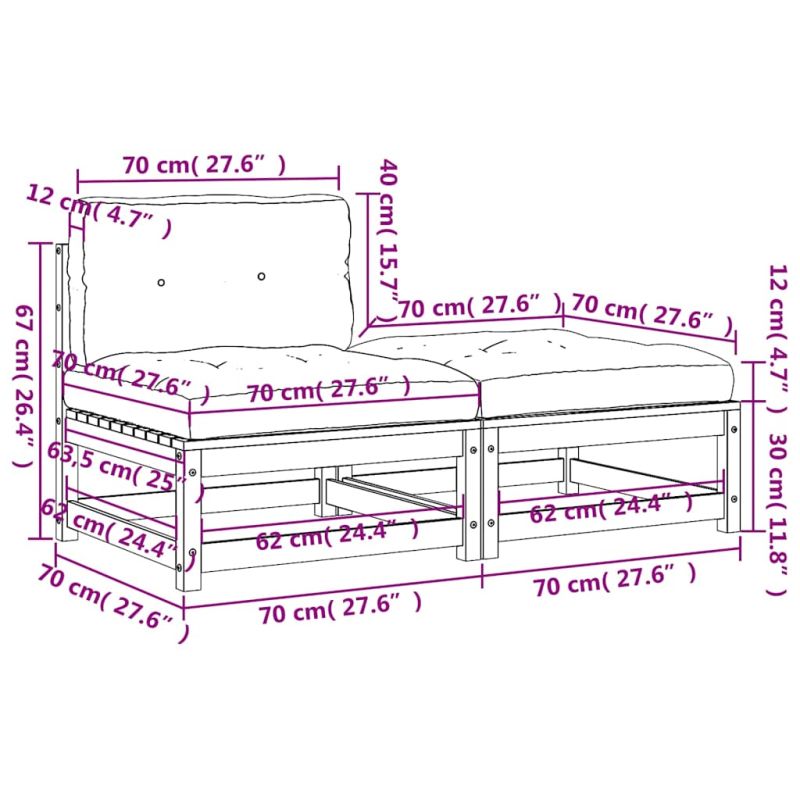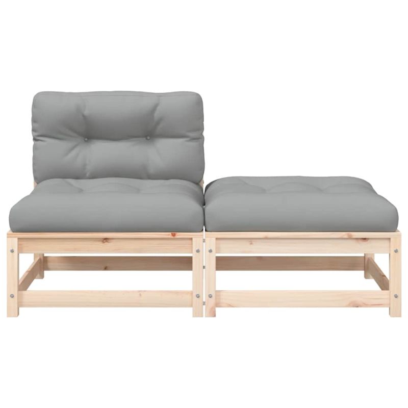 Това дървено градинско кресло с възглавници и табуретка ще бъде страхотно допълнение към вашата градина, тераса или вътрешен двор за разговори със семейството и приятели или просто за наслаждаване на времето. Масивна борова дървесина: Масивната борова дървесина е красив естествен материал. Боровата дървесина е с продълговати шарки, а чеповете придават на материала характерния му рустик вид. Изработено от масивна борова дървесина, това кресло без подлакътници е издръжливо и стабилно.Удобна седалка: Облегалката и подплатените възглавници правят градинския диван по-удобен за сядане.Разнообразна употреба: Тази външна табуретка за крака може да се използва не само за сядане или отпускане на краката ви, но може да се използва и като масичка за кафе, за да държите вашите напитки, храна и други декорации.Дизайн с ламели: Конструкцията с ламели на външния диван ефективно предотвратява събирането на вода, като гарантира, че седалката ще остане суха и няма да изгние.Модулен дизайн: Този патио диван разполага с модулен дизайн, което го прави напълно гъвкав и лесен за преместване, за да отговаря на всяка обстановка. Можете да комбинирате различни модулни елементи, налични в падащото меню, за да създадете собствени конфигурации на градинска зона за отдих! Добре е да се знае:За да сте сигурни, че вашите външни мебели ще останат красиви, ви препоръчваме да ги защитите с водоустойчиво покривало. Максимално 110 кг на седалка. Съобразете се с риска от открит огън и други източници на силна топлина в близост до продукта.