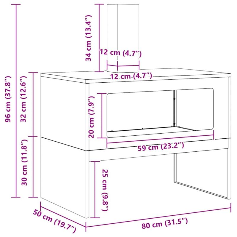Огнище Черно 80 x 50 x 96 см Студено валцована стомана