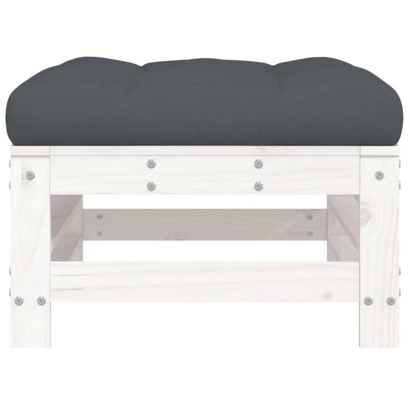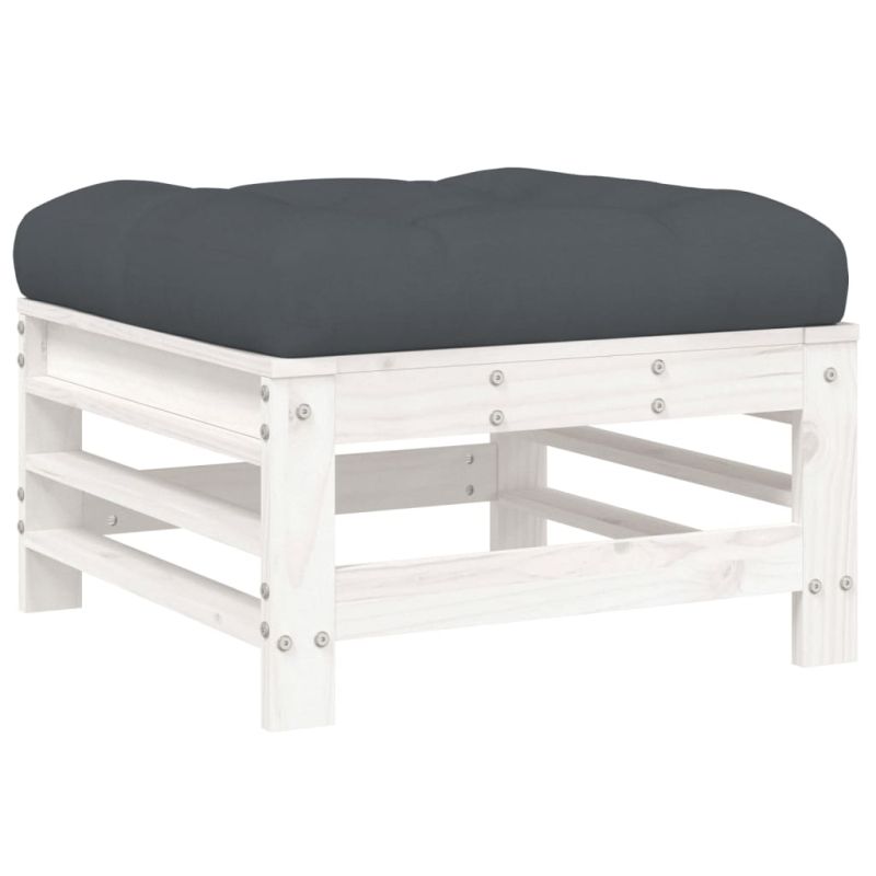 Градински табуретки с възглавници 2 бр бели борово дърво масив