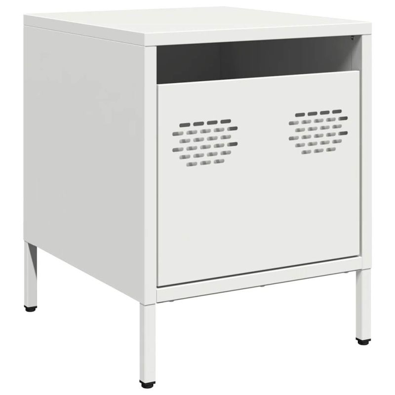 Нощни шкафчета, 2 бр, бели, 35x39x43,5 см, стомана