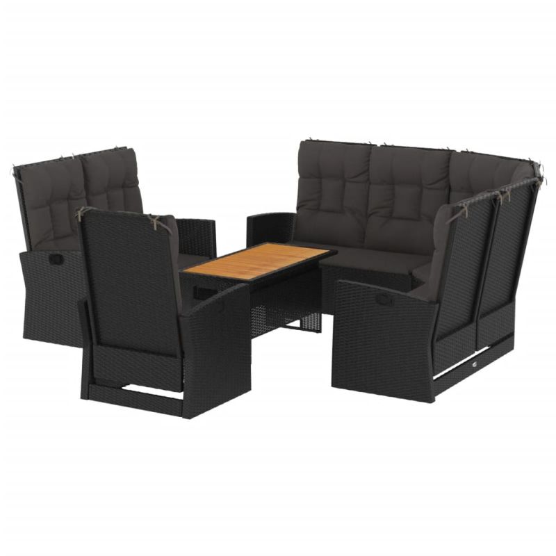 Този стилен и удобен градински лаундж комплект е идеален избор за вас да се отпуснете и да се насладите на времето, да подремнете или да поговорите с приятелите или семейството си. Издръжлив материал: PE ратан, известен също като полиратан, е устойчив на атмосферни влияния и лесен за почистване. Той остава красив отвън за дълъг период от време. По-икономичен е от другите материали, като същевременно предлага отлично качество, удобство и естетичен вид.Масивно акациево дърво: Плотът е изработен от масивно акациево дърво. Акациевото дърво е красив естествен материал. Акациевото дърво е тропическа твърда дървесина, която е плътна, здрава и издръжлива.Здрава и стабилна рамка: Прахово боядисаните стоманени рамки правят лаундж комплекта здрав и стабилен за ежедневна употреба на открито.Повдигащ се плот: Механизмът за регулиране на височината на плота на патио масата осигурява идеалната височина за писане, четене или пиене.Регулируема облегалка: Благодарение на газовия повдигащ механизъм облегалката може да се регулира, за да се нагоди към вашите пози. С докосване на бутона отстрани облегалката може да се накланя за удобна позиция.Удобни седалки: Тези дебело подплатени и подвижни възглавници са изключително удобни, като добавят допълнително комфортно изживяване. Добре е да се знае: За да бъде сглобяването възможно най-лесно, всеки продукт се доставя с ръководство.Забележка: За да сте сигурни, че вашите външни мебели ще останат красиви, ви препоръчваме да ги защитите с водоустойчиво покривало.