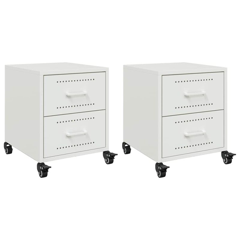 Нощни шкафчета, 2 бр, бели , 36x39x43,5 см, стомана