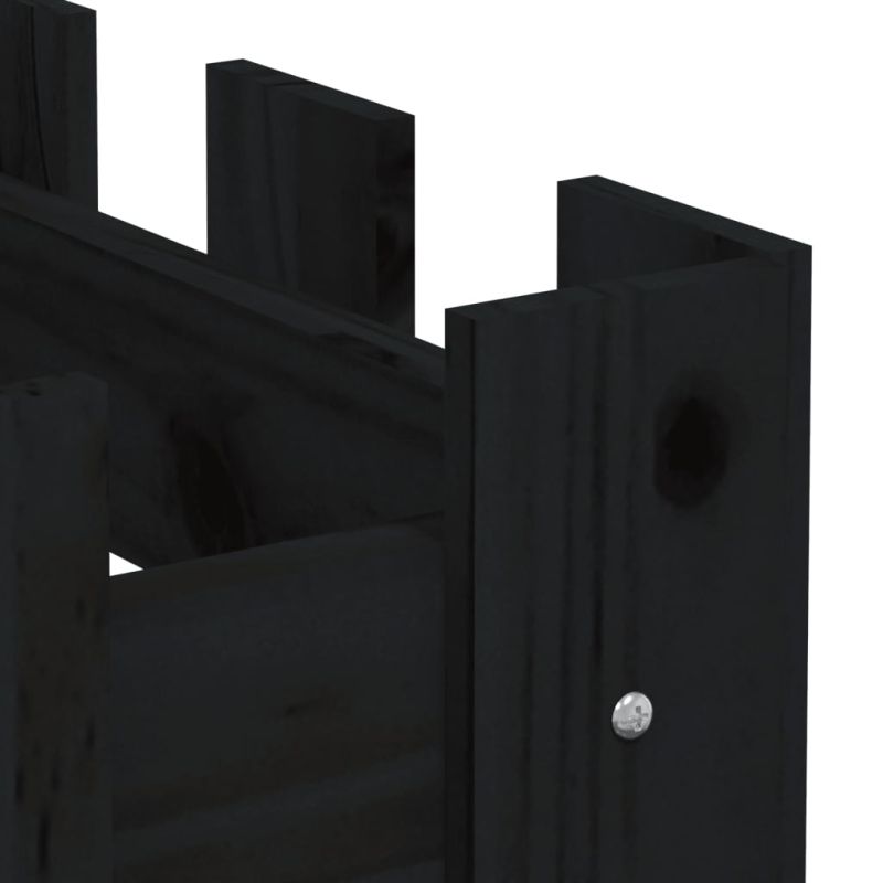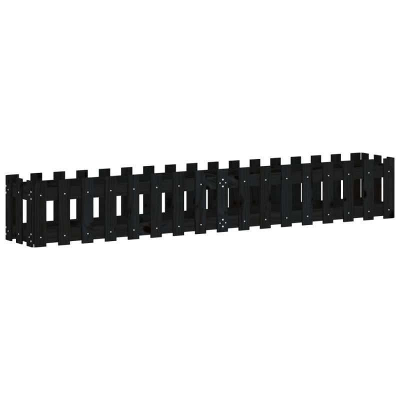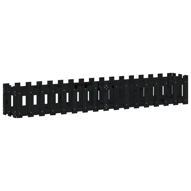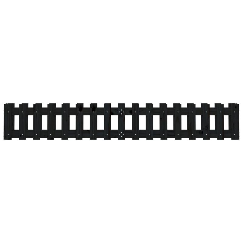 Градинска леха с дизайн на ограда черна 200x30x30 см бор масив