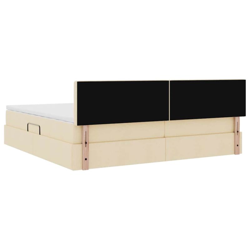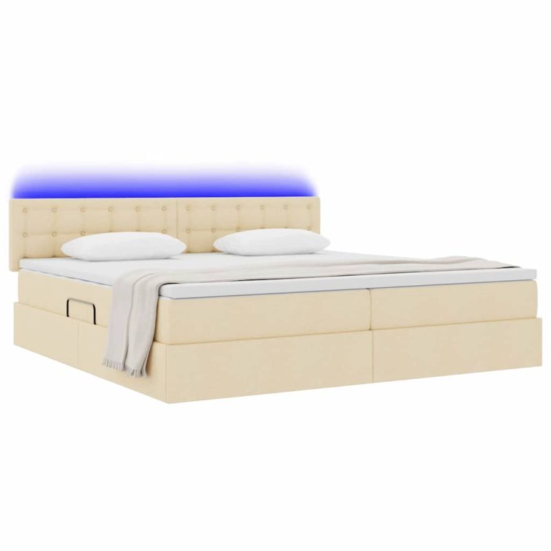 Легло с място за съхранение и LED Кремав 200 x 200 cm текстил