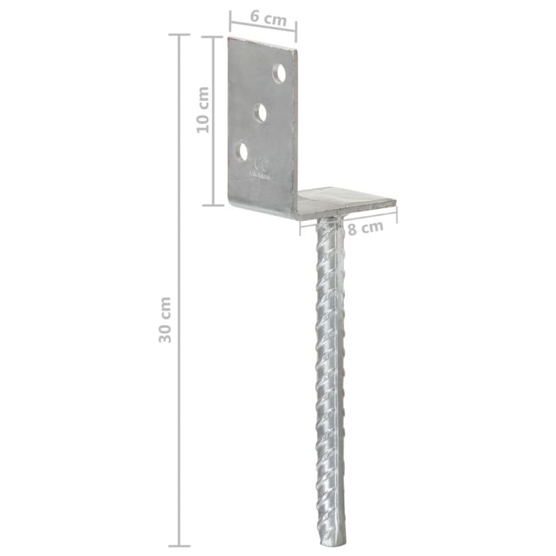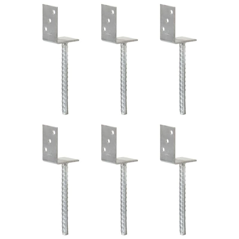 Оградни подпори 6 бр сребристи 8x6x30 см поцинкована стомана