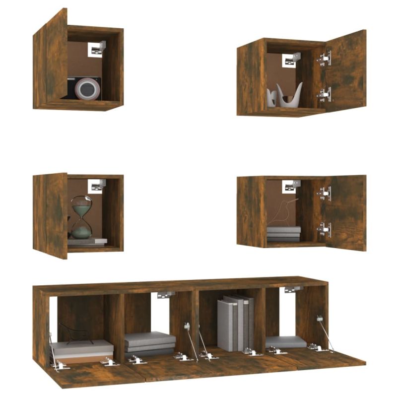 Комплект ТВ шкафове от 6 части, опушен дъб, инженерно дърво