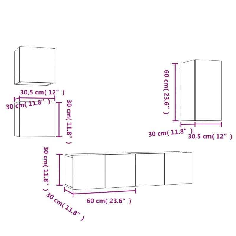 Начало Дом и градина Мебели Секции и поставки за телевизори Комплект ТВ шкафове от 5 части, опушен дъб, инженерно дърво