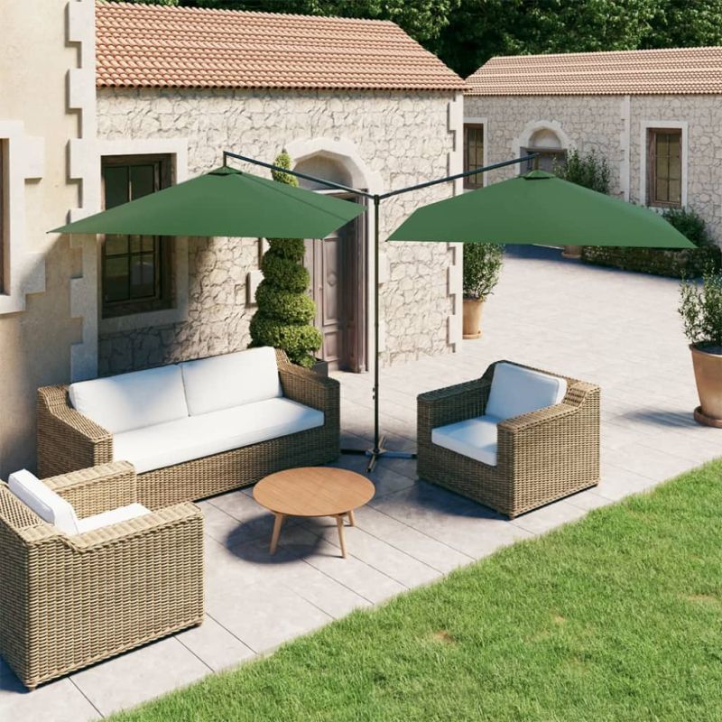Начало Дом и градина Двор и градина Живот на открито Градински чадъри и сенници Двоен градински чадър със стоманен прът, зелен, 600x300 см