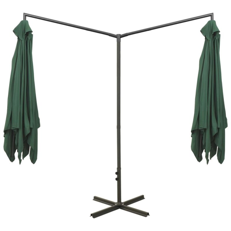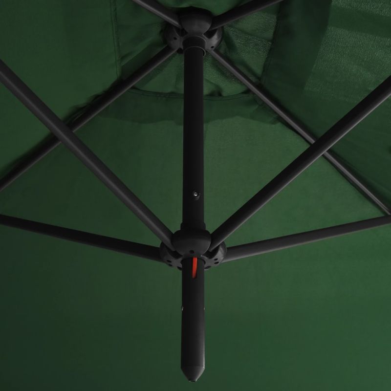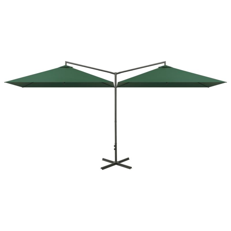 Двоен градински чадър със стоманен прът, зелен, 600x300 см