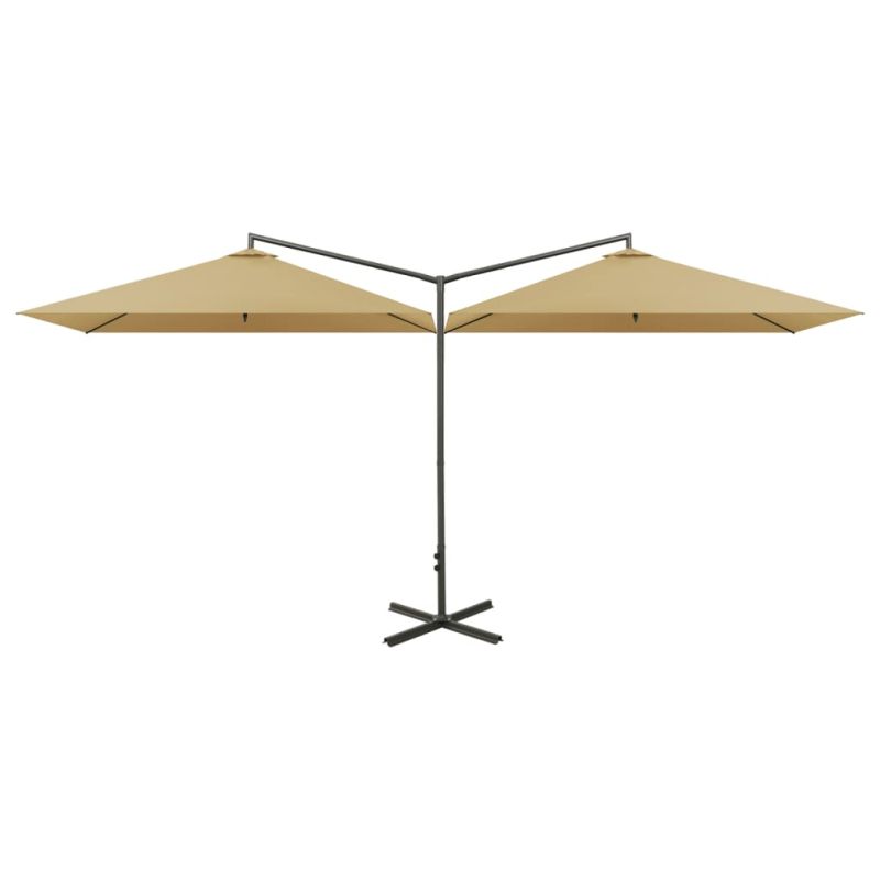 Двоен градински чадър със стоманен прът, таупе, 600x300 см