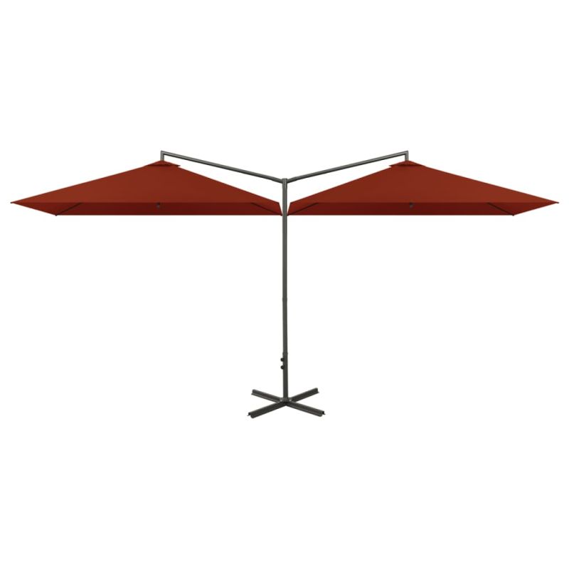Двоен градински чадър със стоманен прът, теракота, 600x300 см