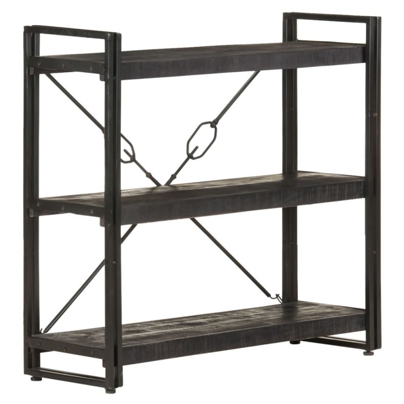 Библиотека с 3 рафта, черна, 90x30x80 см, манго масив