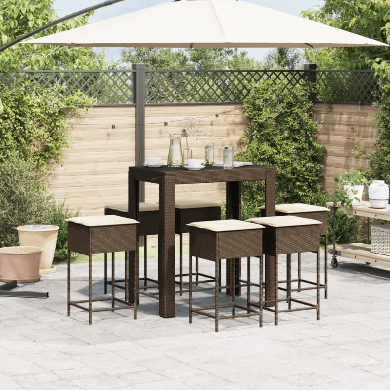 Начало Дом и градина Мебели Външни мебели Комплекти градински мебели Градински бар комплект с възглавници 7 части кафяв полиратан