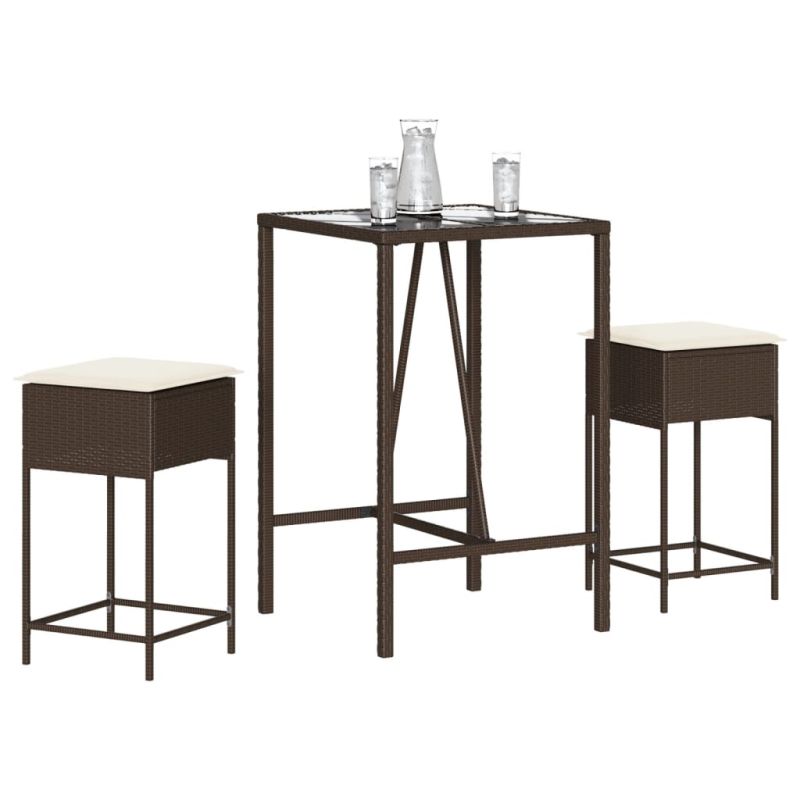 Градински бар комплект с възглавници 3 части кафяв полиратан