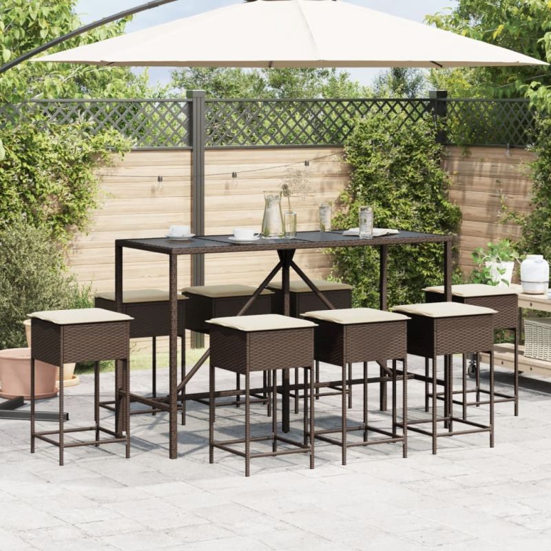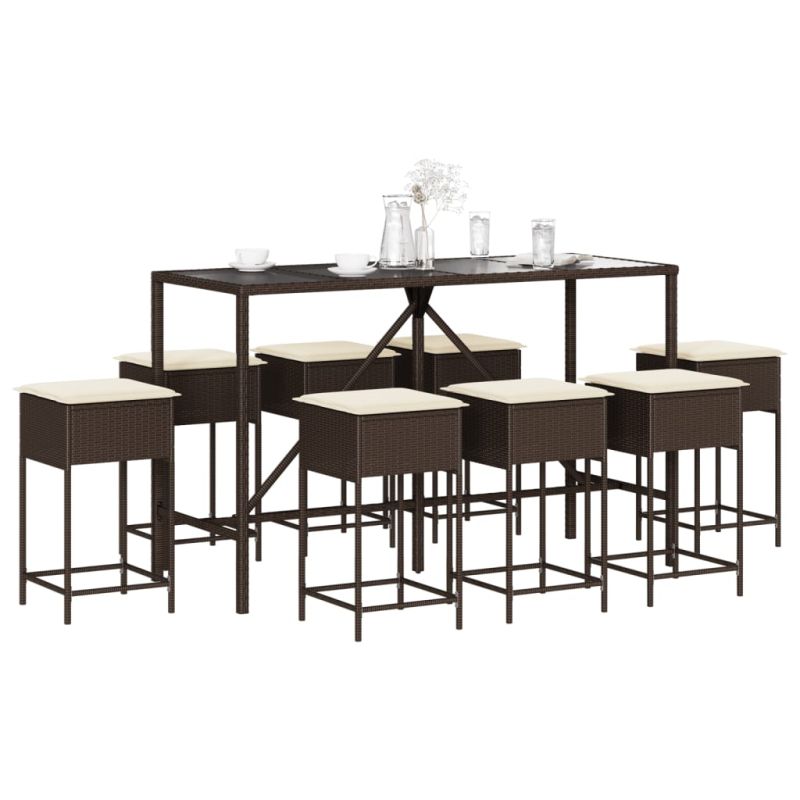 Градински бар комплект с възглавници 9 части кафяв полиратан