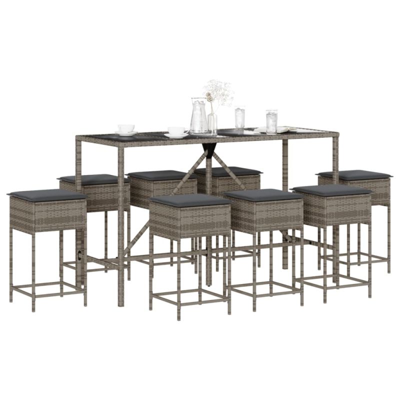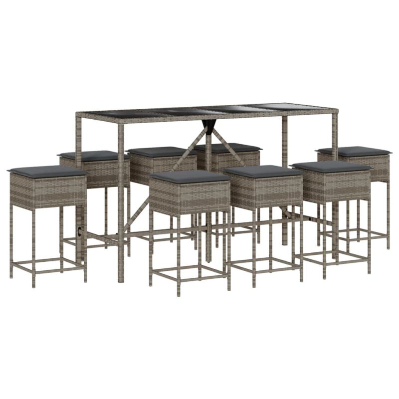 Градински бар комплект с възглавници 9 части сив полиратан
