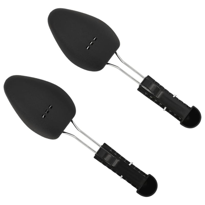 Тези калъпи за обувки гарантират, че обувките ви няма да се намачкват, като позволяват на обувките ви да запазят формата си дори след многократно носене. Гъвкав дизайн: Тези калъпи за обувки са проектирани с дупки за регулиране на дължината им. Можете също да ги използвате като калъпи за ботуши, като монтирате тази черна метална рамка с отвори вертикално. Издръжливи материали: Изработени от здраво желязо и издръжлива пластмаса, тези форми за обувки са издръжливи, леки и лесни за носене. Многофункционален: Пластмасовият калъп за обувки поддържа обувките ви в добра форма, предотвратява гънки, вдлъбнатини и неприятни миризми, като същевременно ги кара да издържат по-дълго.