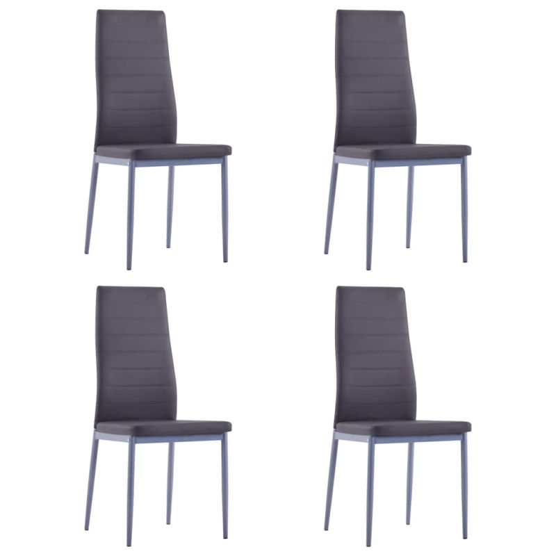 Този трапезен комплект, състоящ се от 5 елемента, има елегантен, модерен дизайн и е перфектен за тези, които искат да добавят стил към интериора си. Масата е изработена от високоякостно темперирано стъкло, което се почиства лесно. Всеки стол е тапициран с качествена изкуствена кожа. Меката, подплатена седалка е много удобна. Доставката включва 1 маса и 4 стола.