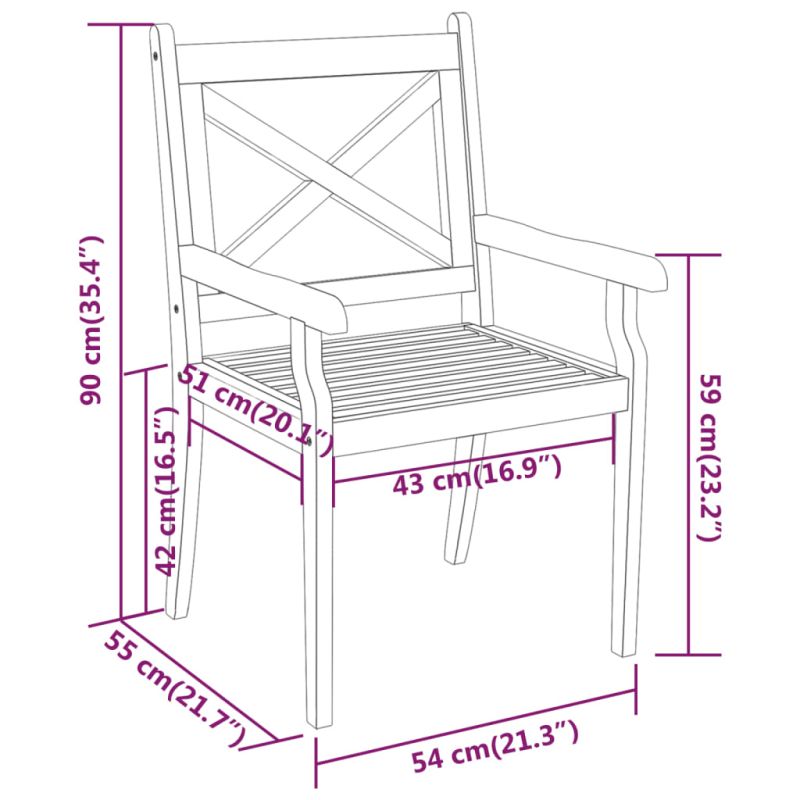 Седнете и се насладете на прекрасна вечеря на открито или друго ястие на този дървен градински трапезен комплект. Масивна акациева дървесина: Масивното акациево дърво е красив естествен материал. Акациевото дърво е тропическа твърда дървесина, която е плътна, здрава и издръжлива. Здрав плот: Плотът на тази външна маса предлага стабилно пространство за напитки, закуски, декоративни елементи и други необходими неща. Дизайн с ламели: Този трапезен комплект за вътрешен двор се отличава с ламелен дизайн, който придава рустикален чар. Забележка:Забележка: За да удължите живота на вашите градински мебели, ви препоръчваме да ги защитите с водоустойчиво покривало. Максимално 110 кг на седалка.