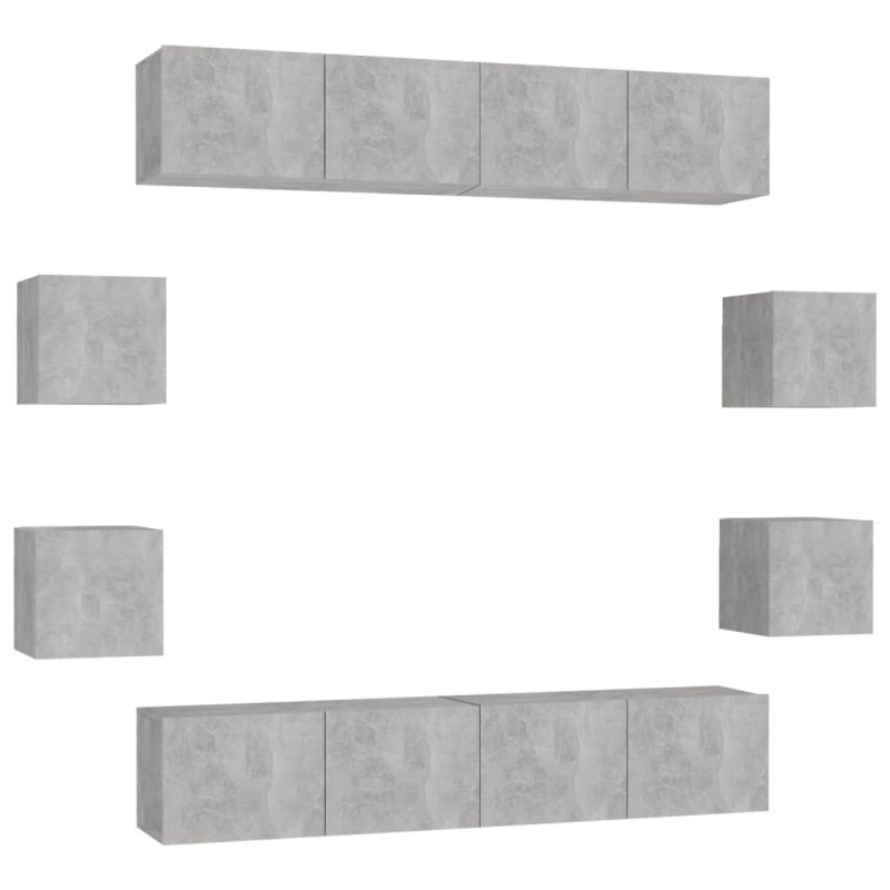 Комплект ТВ шкафове от 8 части, бетонно сиви, инженерно дърво