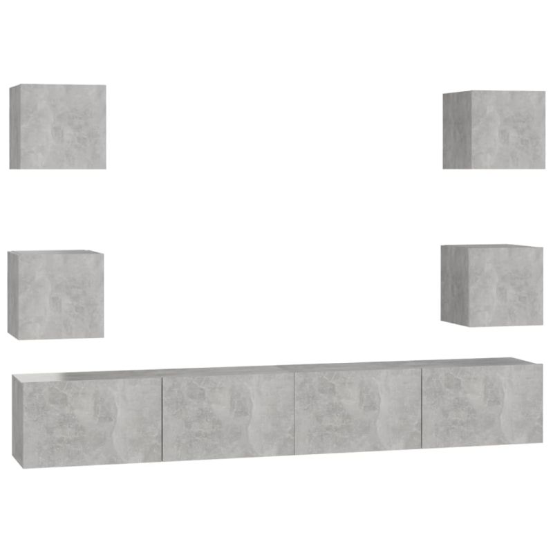Комплект ТВ шкафове от 6 части, бетонно сив, инженерно дърво