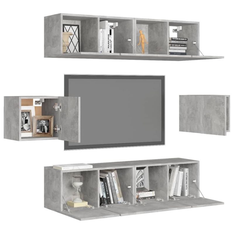 Комплект ТВ шкафове от 6 части, бетонно сиви, инженерно дърво