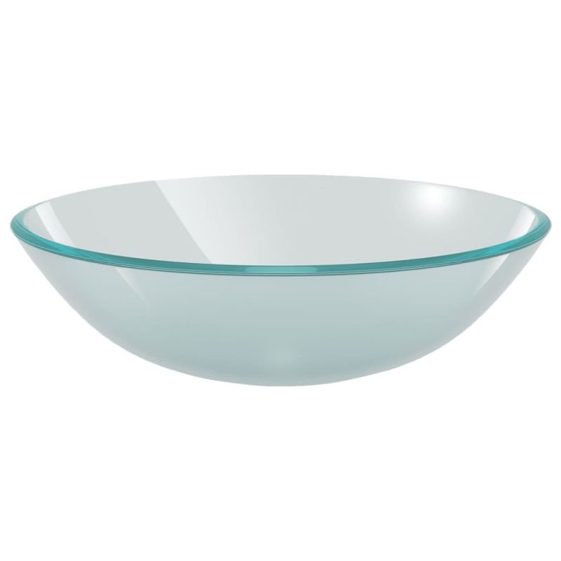 Тази кръгла мивка за баня с кранче и сифон е проектирана да седи на плота и да привлича погледите със своя уникален стил. Тъй като мивката е произведена от напълно закалено стъкло, тя издържа на по-високи температури, които се допират до мивката, без да се повреди. Изработени от цинк и месинг, това кранче и сифон са издръжливи и гарантират дълъг експлоатационен живот. Освен това тя разполага със семпъл клик-клак механизъм и е лесна за използване и почистване. Този атрактивен умивалник е не само практичен за ежедневна употреба, но и истинско украшение за вашето жилищно пространство. Децата трябва да бъдат наблюдавани, за да се гарантира, че няма да си играят с уреда. Пазете децата далеч от зоната за сглобяване.Внимание: Прочетете внимателно инструкциите преди употреба и ги запазете за по-нататъшни справки.
