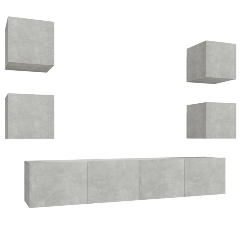 Комплект ТВ шкафове от 6 части, бетонно сив, инженерно дърво