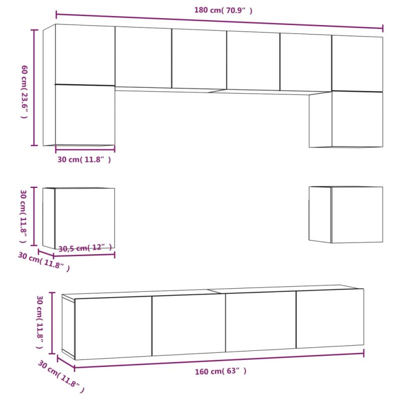 Комплект ТВ шкафове от 8 части, сонома дъб, инженерно дърво