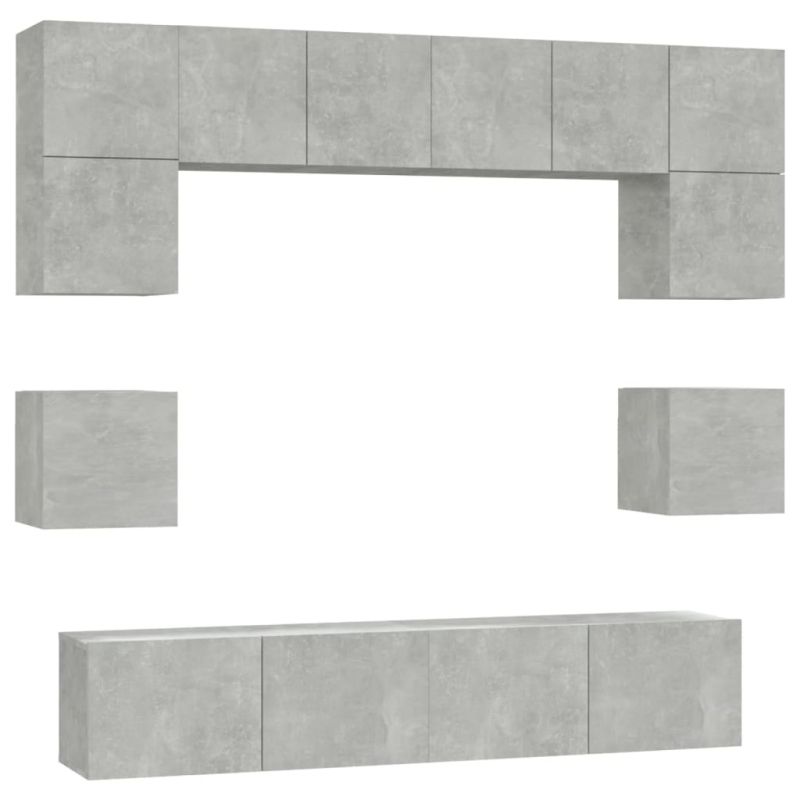 Комплект ТВ шкафове от 8 части, бетонно сив, инженерно дърво