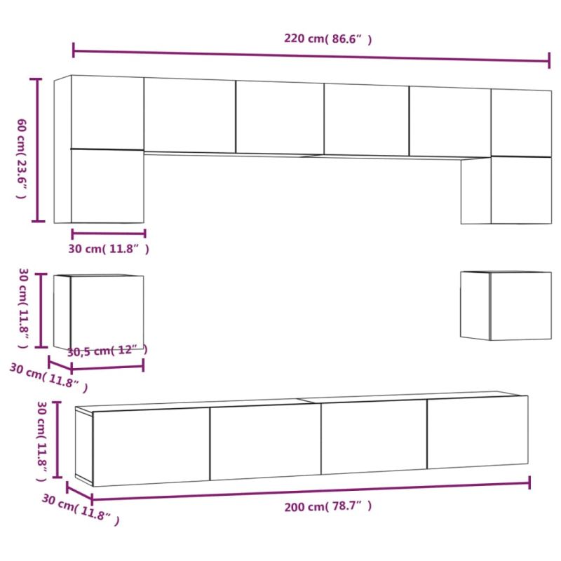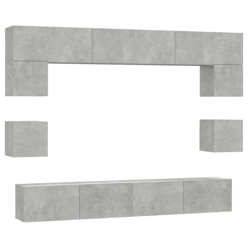 Комплект ТВ шкафове от 8 части, бетонно сив, инженерно дърво