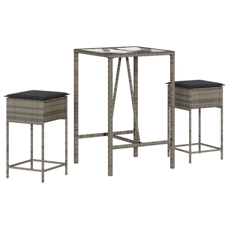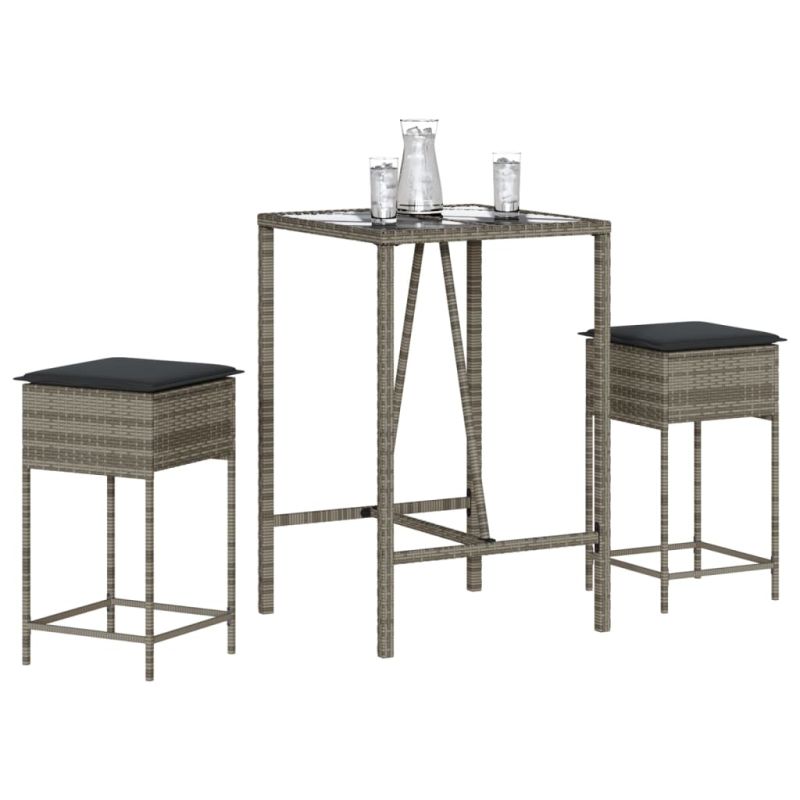 Начало Дом и градина Мебели Външни мебели Комплекти градински мебели Градински бар комплект с възглавници 3 части сив полиратан
