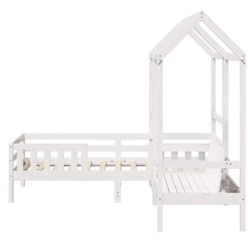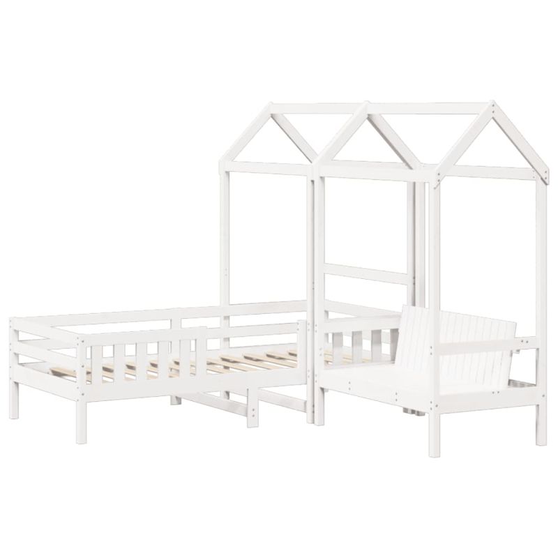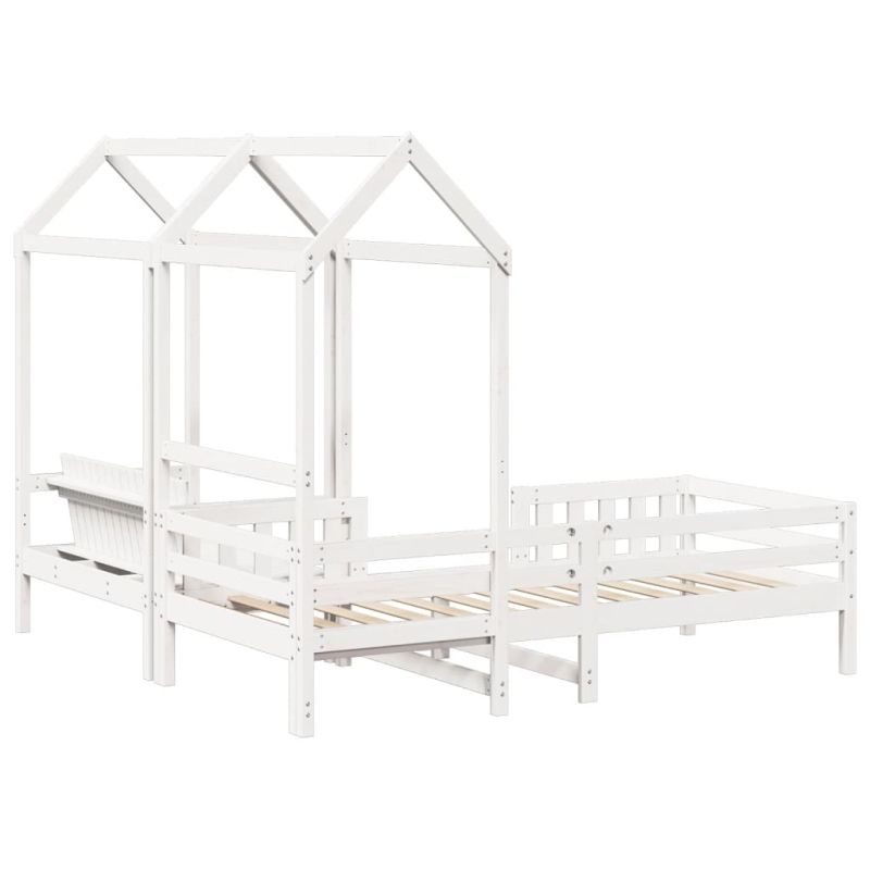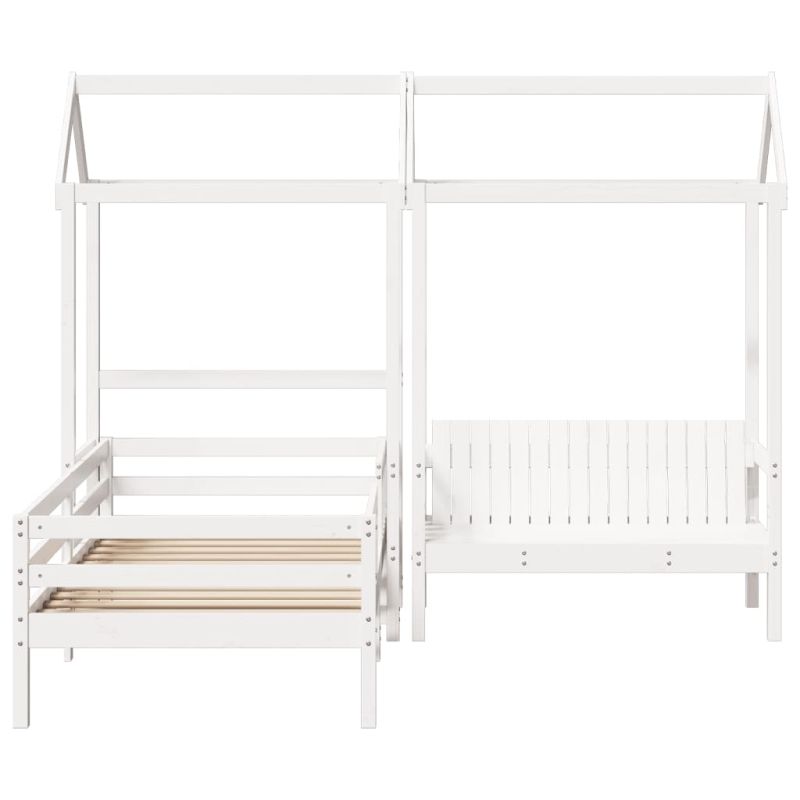 Добавете модерен щрих към спалнята си с този комплект легло и пейка! Той е практично и декоративно допълнение към вашето жилищно пространство. Масивна борова дървесина: Масивната борова дървесина е красив естествен материал. Боровата дървесина има прави влакна, а чеповете придават на материала характерния му, рустик вид.Летви от шперплат: Летвите от шперплат осигуряват добро разпределение на теглото, като гарантират, че матракът ще остане на място при всяко завъртане и обръщане на тялото ви по време на сън.Практична облегалка: Пейката е проектирана с облегалка, така че да можете да отпуснете тялото си според вашия комфорт.Страхотно забавление: Като комбинирате покрива с леглото на детето си, можете да създадете скривалище, което предлага на детето ви много забавления преди лягане. Това иновативно допълнение не само ще бъде вълнуваща фокусна точка, но и ще внесе чудо и вълнение в детската стая.Модерен дизайн: Добавете модерен стил към съществуващия си интериор! Модерният дизайн се отличава с изчистени линии, минималистичен вид и естествена светлина като част от стила на интериорния дизайн. Полезно е да знаете:Матракът не е включен в това легло. Предлагаме разнообразна селекция от матраци. Можете да разгледате нашия магазин за подходящ матрак.Тази рамка за легло е с ламели за основа и включва ламели. Максимално 110 кг на седалка. ПРЕДУПРЕЖДЕНИЕ. Не поставяйте това детско легло в близост до източници на топлина, прозорци и други мебели. ПРЕДУПРЕЖДЕНИЕ. Не използвайте това детско легло, ако някоя част е счупена, скъсана или липсва.