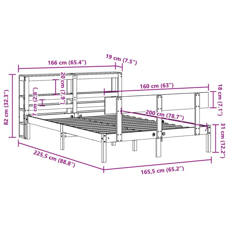 Рамка за легло без матрак, бял, 160x200 см, бор масив