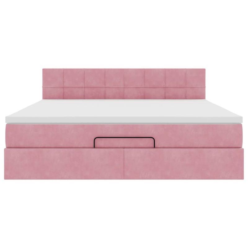 Османска легло с матрак и LED, розово, 160x200 см, кадифе